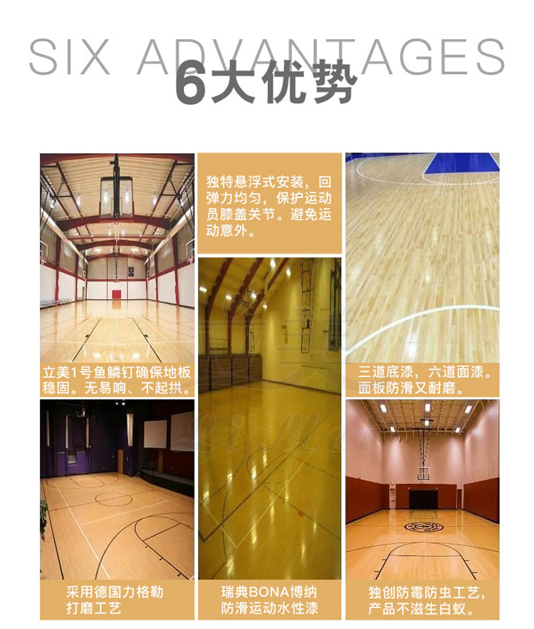 体育馆、篮球馆中运用的运动木地板是不容许存在裂缝和结疤的,但这种体育地板的购买本钱很高。一般中、等级低的体育木地板有裂缝和结疤是难免的,但假设过多就不好了。一般来说,1平米的体育地板结疤不要逾越3个起刺的树种,以铲除对运发起皮肤构成危害。