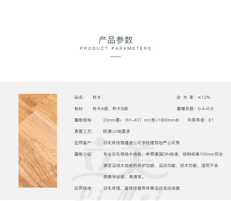 羽毛球木地在安装好后不能立即投入使用,应放置12小时,给地板留足养生时间,以便羽毛球木地板能快速适应场馆环境,为以后的使用打下坚实的基础,在清洁时应注意,要用不滴水的拖把进行清理。